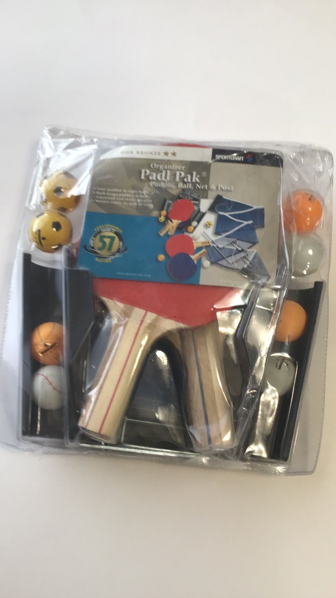 Complete set for starting ping pong challenges. Has the balls paddles and storage rack. Just in time for Xmas!