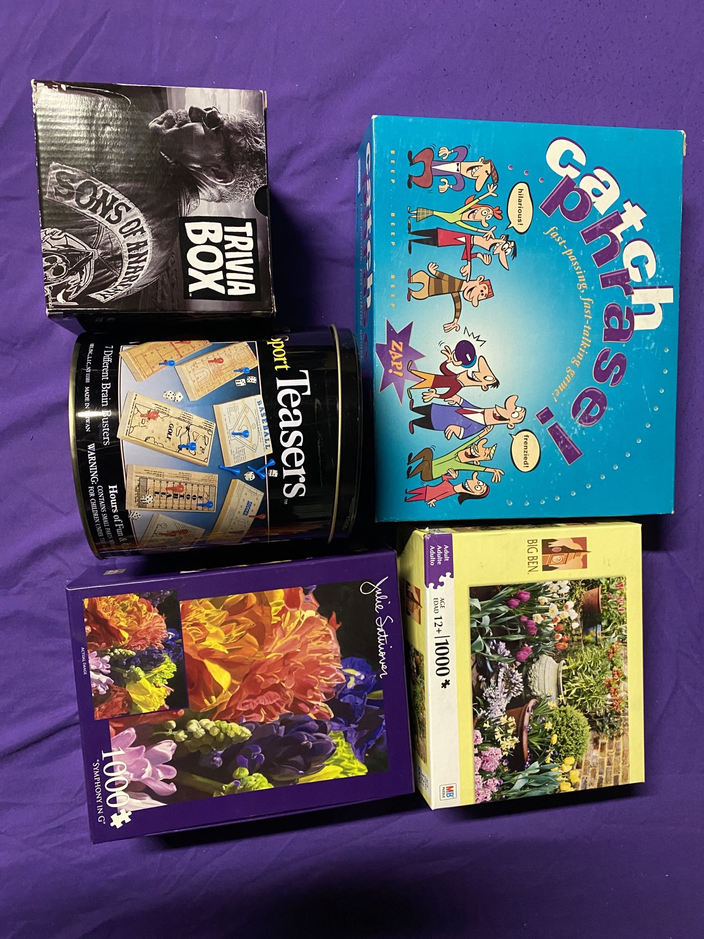 Sons of anarchy Trivia, 3 1000 pieces puzzles, 7 different brain busters, catch phrase, jumbling tower