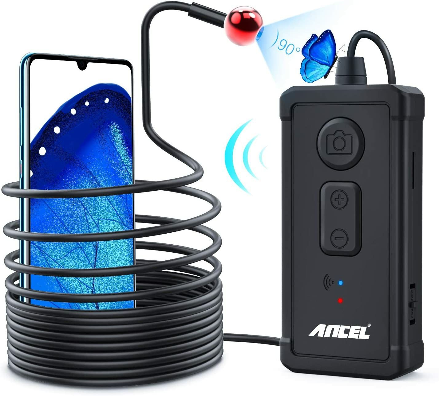 WF100 Wireless Endoscope Features of WF100 Endoscope Camera for Android and iOS: --Lens: 90° wide angle lens --Diameter of the head: 8.5mm --Probe length: 11.5ft --Focal range: 3.15inch - 5.91inch --Camera: 2-megapixel camera,allows creation of HD videos, gives a smooth 30fps frame rate video quality. --Cable: semi-rigid cable, stiff enough for shaping. --Accessories: aluminum lens ball, magnet, hook, mirror. --Waterproof capabilities: IP67 waterproof rating, the snake and camera can be underwater for maximum 30mins within 3.3ft depth. --Compatibility: Android 2.3+, iOS 6.0+ --Easy to use: downloadable App “HD WiFi” on App Store and Google Play. ANCEL Wireless Endoscope with IP67 Waterproof and 90° Wide Angle How to Use the Wireless Endoscope Search the free “HD WIFI” in the Apple Store or Google. Download and install. Turn on the endoscope WIFI box power switch, waiting for the blue indicator lights up. Turn on your smartphone and connect your phone WIFI. Connect the hostpot named “Jetion*****” to your device. Input the password “12345678” and then click “join”. Click the free app “HD WIFI” on the smart device and then you can view what you want to inspect.