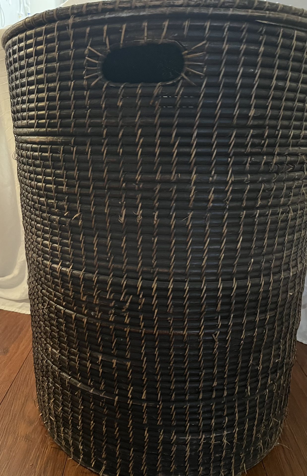Beautiful sturdy with handles Lid , wicker basket For storage or hamper Natural texture and use. Cash only $100 $1