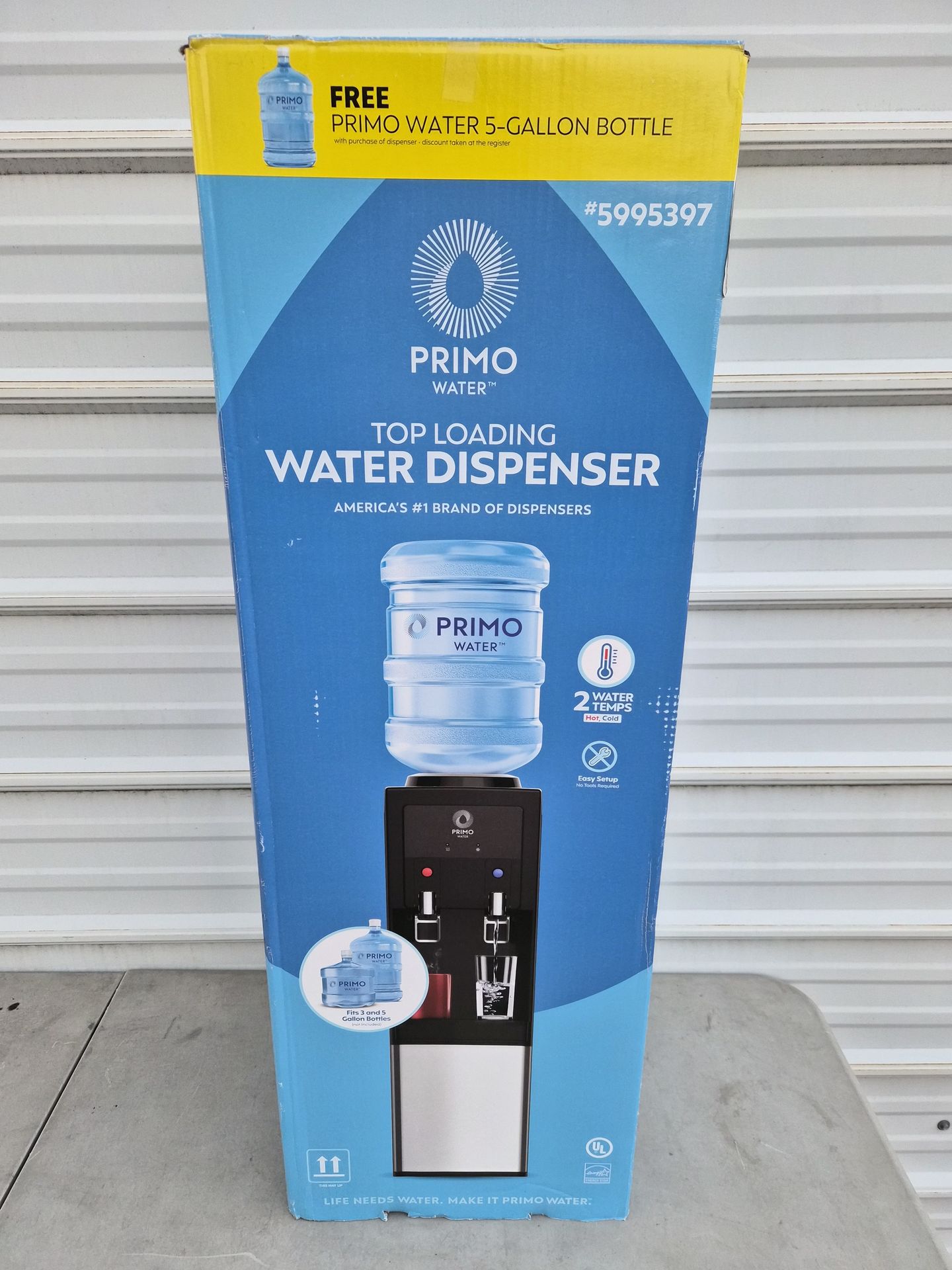 BRAND NEW, in the box, Primo Water Top Loading Water Dispenser. This water disppenser features a stainless steel finish, a top-loading design for easy water level viewing, two temperature dispensers hot & cold, easy-to-use paddle controls, corrosion-resistant reservoirs, quiet operation, LED indicator lights, and a two-step child safety lock. Retails for $149 +tax. Save $$ here!! Model #601382. $120 Message me if you're interested!!