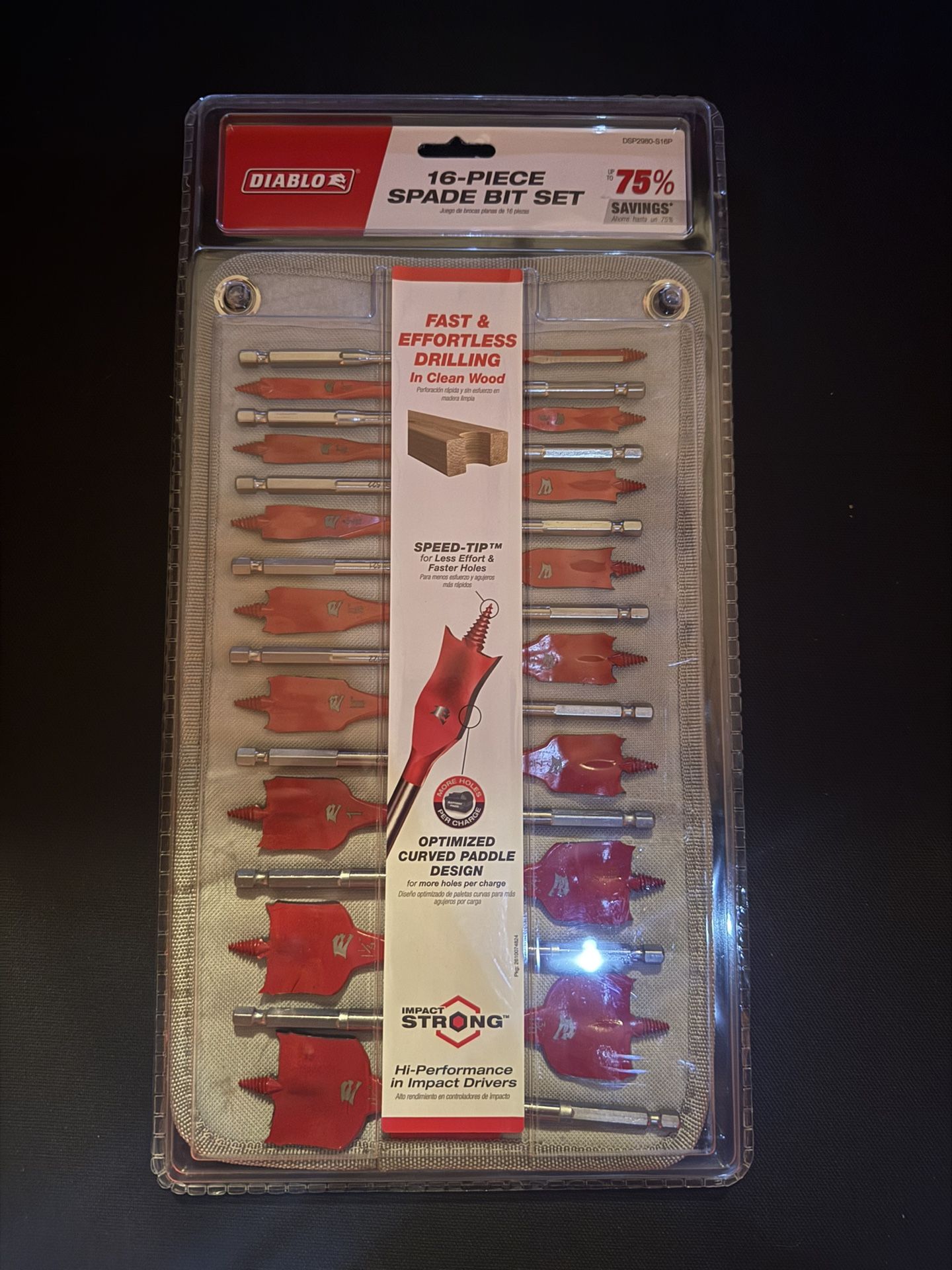 New Diablo 16 Piece Wood Spade Drill Bit Set