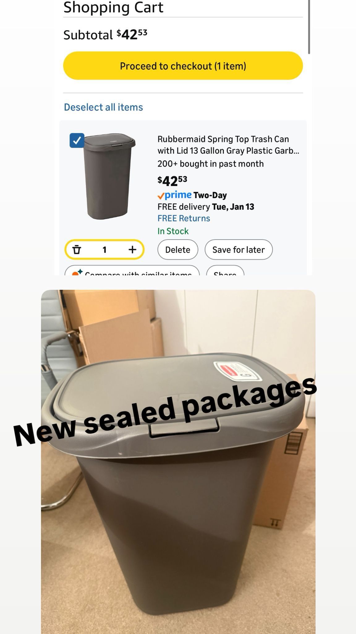 Trash Can with Lid 13 Gallon Gray Plastic Garbage Bin for Home/Kitchen/Office/Garage Wastebasket – Lift-Open Kitchen Black Trash Can 13 Gallon, Large Office/Home Garbage Basket,Black rubber made 17.2"L x 14.8"W x 25.5"H New sealed packaging Pick up Belmont and broadway Chicago Each is 25$ ( 20$ less than Amazon price with tax ) Any lower offers will be ignored .