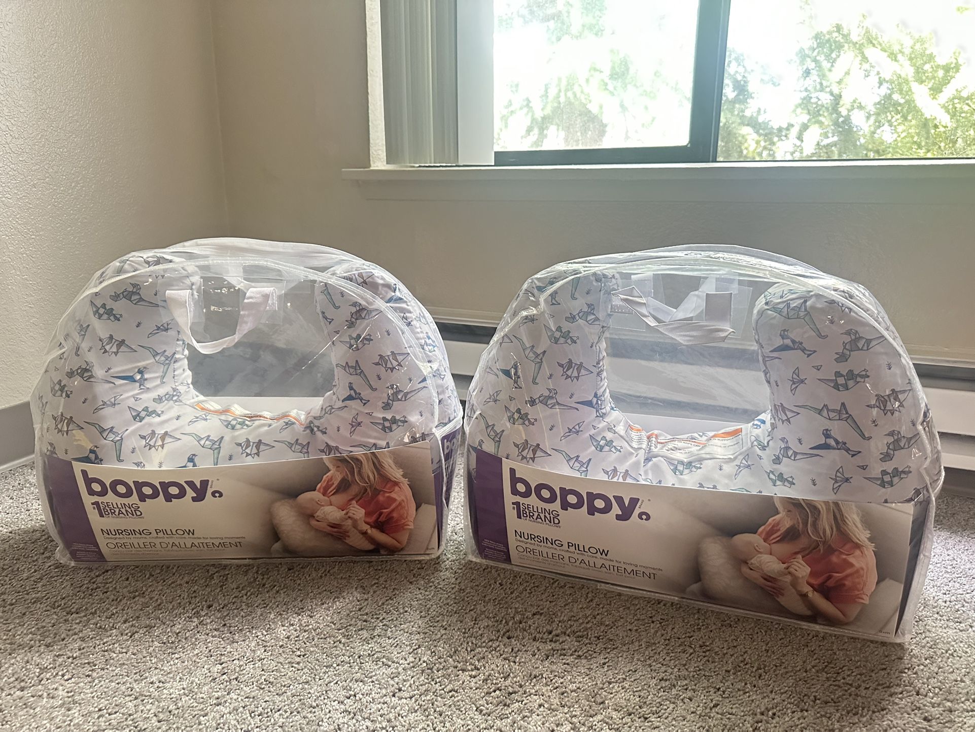 * Boppy Gray Dino Nursing Pillow * • larger, firmer, more supportive pillow for breastfeeding & bottle feeding & tummy time • used only for tummy time • • $30 each or $60 for both