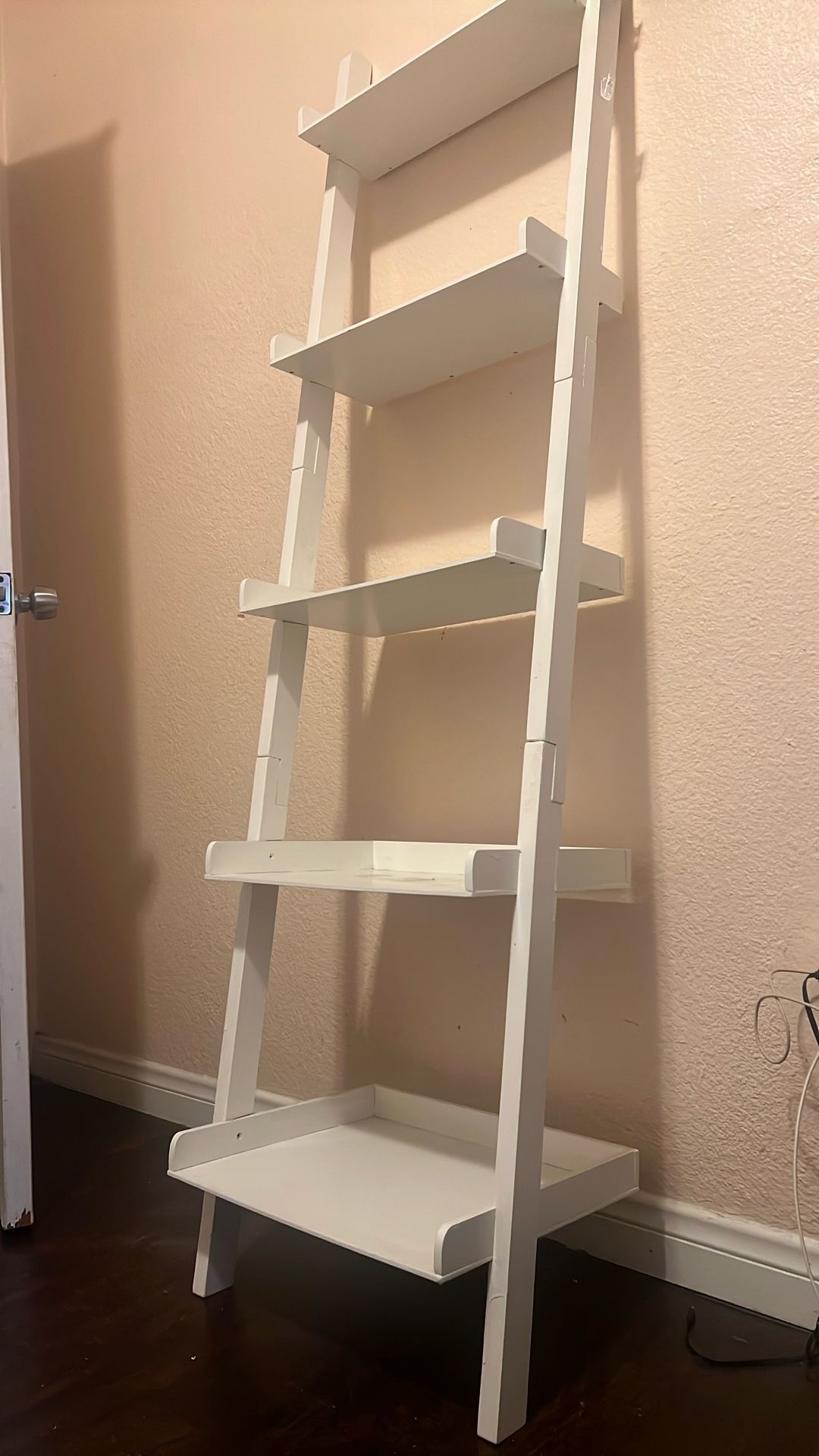 66.5in in height Width18in Depths smallest(top shelf) 5inches Bottom shelf 13 in. Each shelf goes up 2 inches in depth from top to bottom (5, 7, 9, 11, 13)