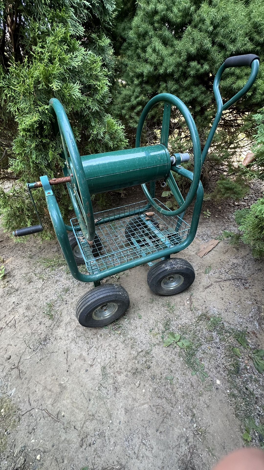 Green Metal 4-Wheel Portable Hose Reel Cart