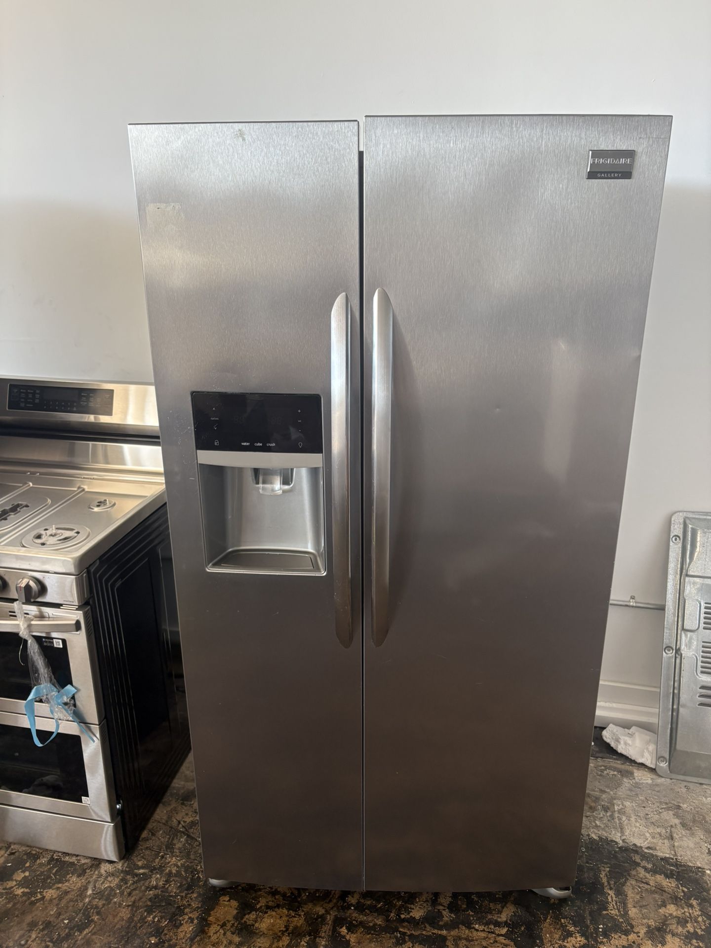 Nice clean counter depth Frigidaire Gallery STAINLESS STEEL 23 cu ft side by side refrigerator for sale. $450 delivered installed and with 4 month warranty Thanks. $400 picked up.4 month warranty. When we deliver, we bring appliance in, hook everything up and Show everything in good working order before Any Payment. SO NO LOST TO YOU. SAVE YOURSELF TIME, WORRIES AND MONEY! will remove any old appliance for free. Reviews on Marketplace profile.
