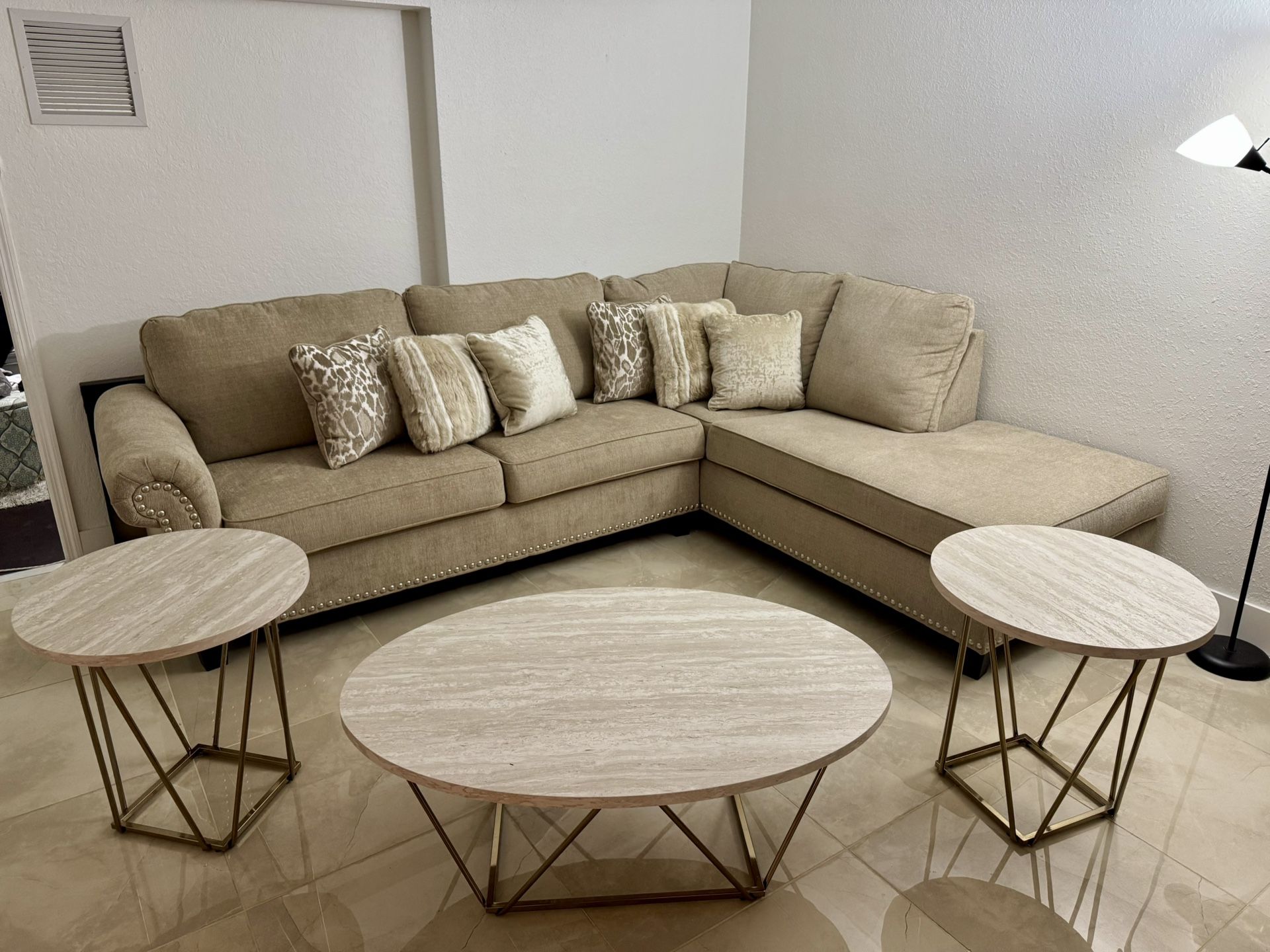 L-Shaped Couch With Tables