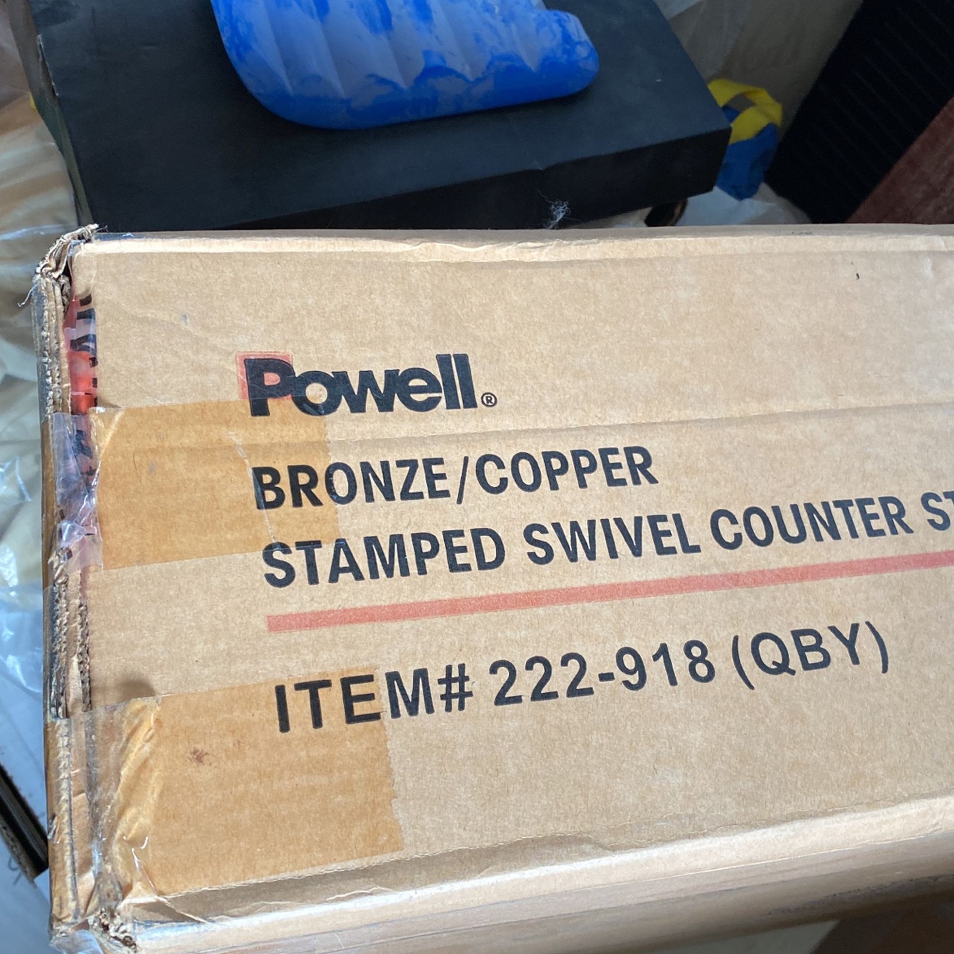 Swivel counter / Bar stools never opened. Brand new. $100 for the 2 they look great. They are a bronze /copper