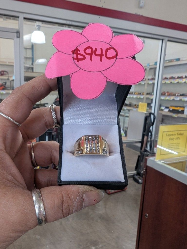 14k yellow gold 10.2grms sz 12 clear stones $940+tax or $94 down for 6 monthly payments ASK FOR ALEXA 2835 s shaver st Pasadena Texas 77502 #fcp2287