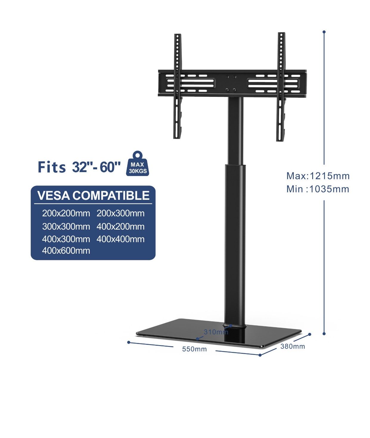 FITUEYES Universal TV Stand Base with Swivel Mount Height Adjustable for 32 to 60 Inch TV, TT106002GB