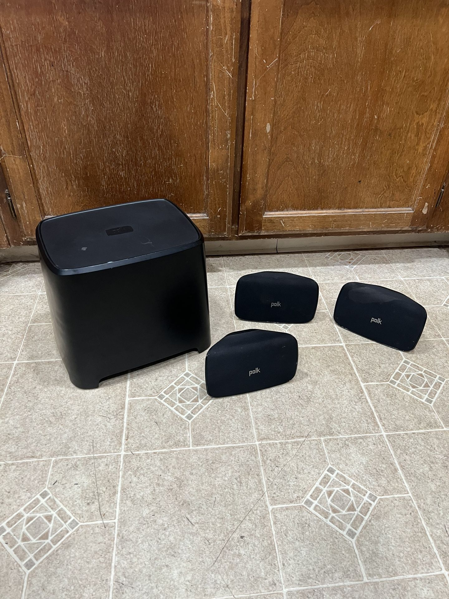 Serious buyers only please. Selling together. 4 total speakers. Polk DSB2 6.5” sub woofer and 3 Polk DSB3 speakers. Two of the DSB3 speakers are right, and one is left. Speakers only no wires. No holds or trades. Pick up only.