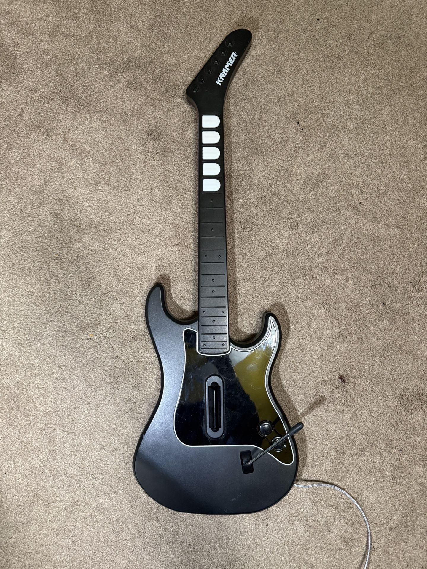 This is a Kramer Striker guitar hero controller with 3D Printed Frets, and that has been modded with and to work on PC and a number of consoles including Nintendo Switch, PS4, PS5, PS3, and Xbox 360. You can use it to play Fortnite Festival or Rockband 4 on newer consoles, and any Guitar hero/Rockband game on older consoles. I can put back the original frets if requested