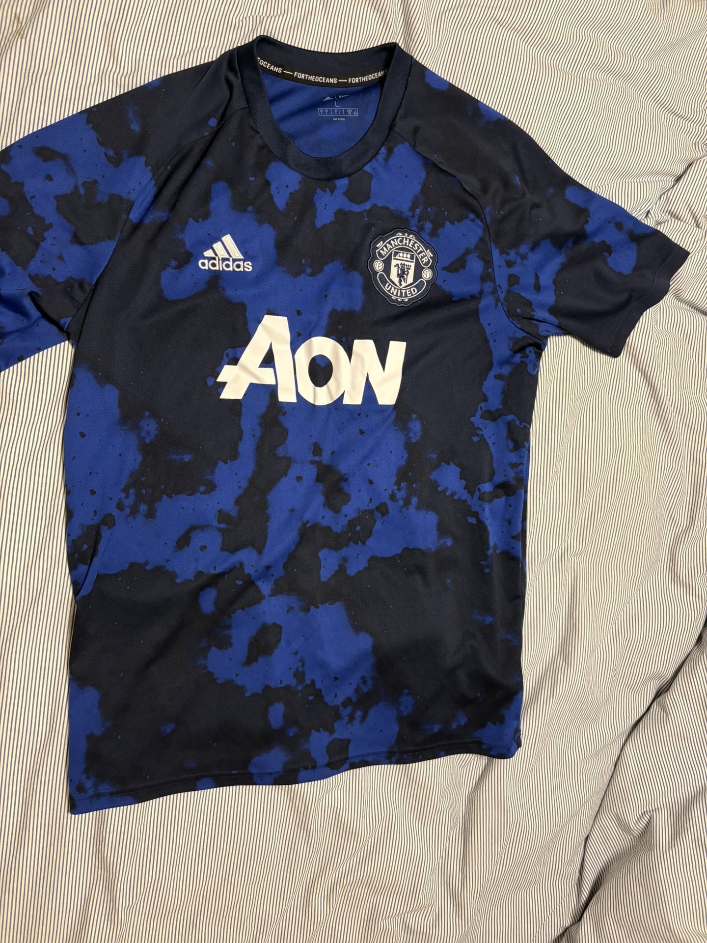 Manchester United Jersey Men's Large Blue Adidas Parley Away Soccer Aon Shirt