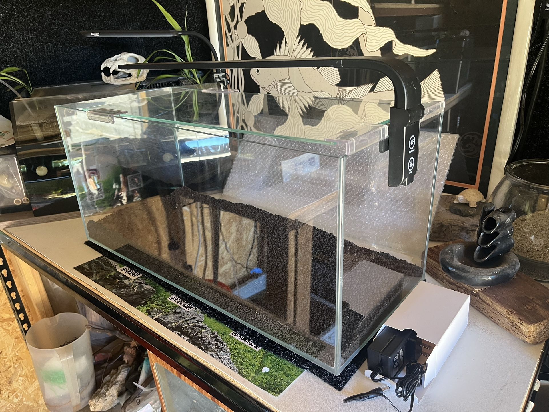 I have this beautiful rimless 10 Gallon Tank from JBJ it works for both fresh and Salt water.. I have the box and everything that came with the tank Description JBJ's Rimless Desktop aquariums are small in size yet big on features. With its low iron glass, 3 stage filtration and dimmable 2 channel LED light the JBJ Rimless Desktop Aquariums are the perfect choice for your desktop or countertop. • 76 gph Return Pump Included • Glass Lid • Removalble 3 Stage Filter Cartridge • Flip Top 9 Watt, 2 Channel-Blue & White Dimmable LED Light Bar • High Clarity Glass • Removable Pedestal Included Extra: I also have a new Tetra heater for a 2-10 gallon tank that I could add for bit extra to make the set up complete and ready for when weather changes.. I was planning on setting this up but Ived had it for over a year just sitting collecting dust so it’s time to let it go .. I am trying to get $150 OBO