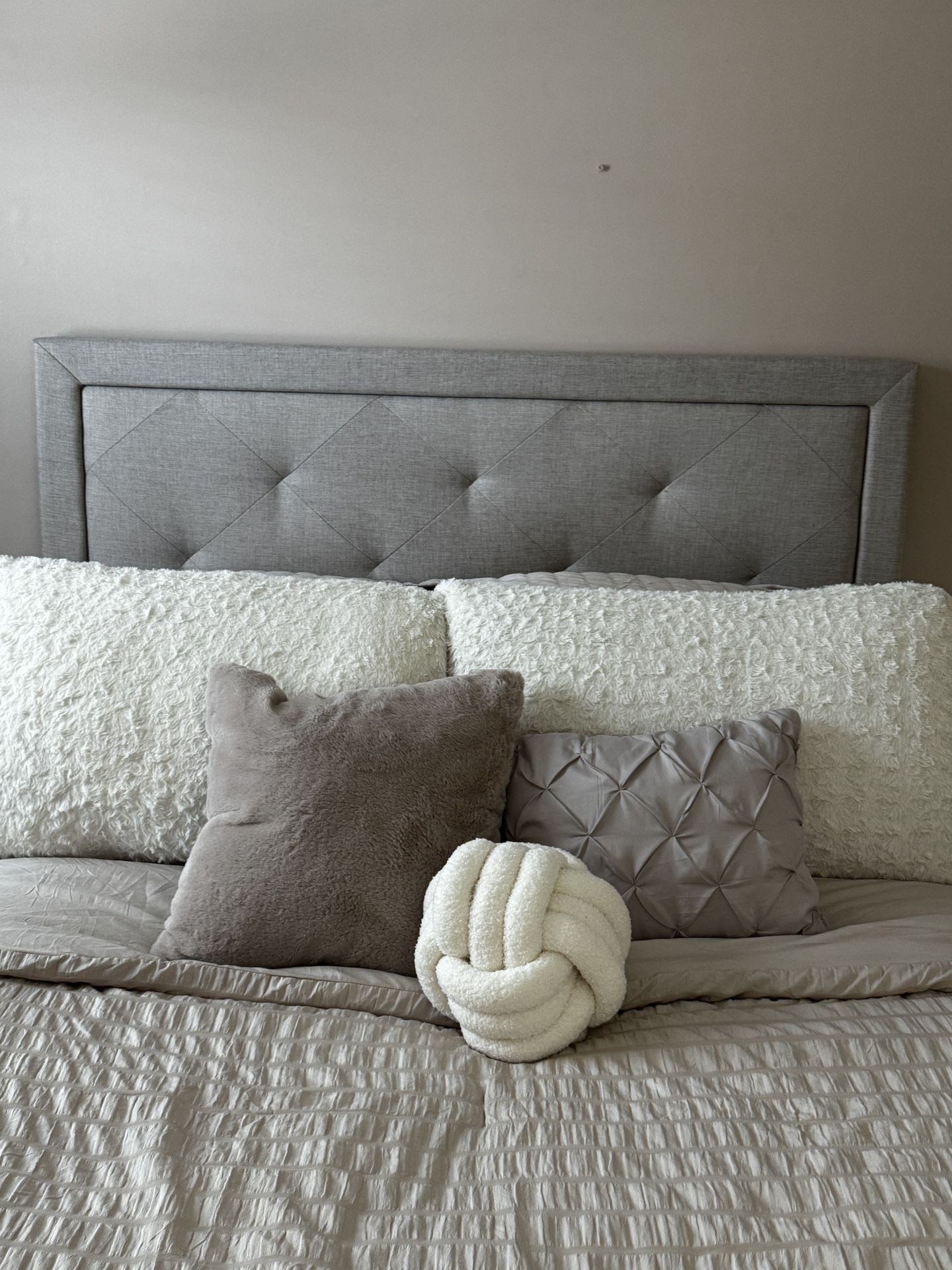 Full size headboard, tan/beige color fabric. Willing to negotiate price, just want gone. **PICK UP ONLY**