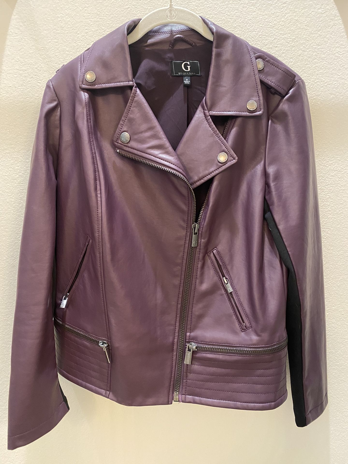 Maroon, leather Moto jacket Size medium Perfect condition ,