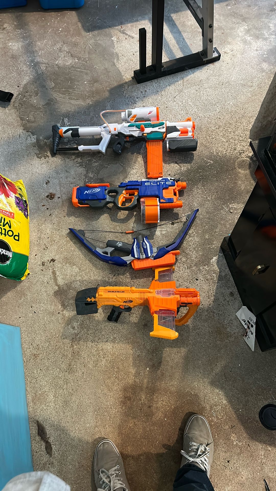Nerf double dealer, Stratobow, hyperfire elite and tri-strike. All four for one low price. All working