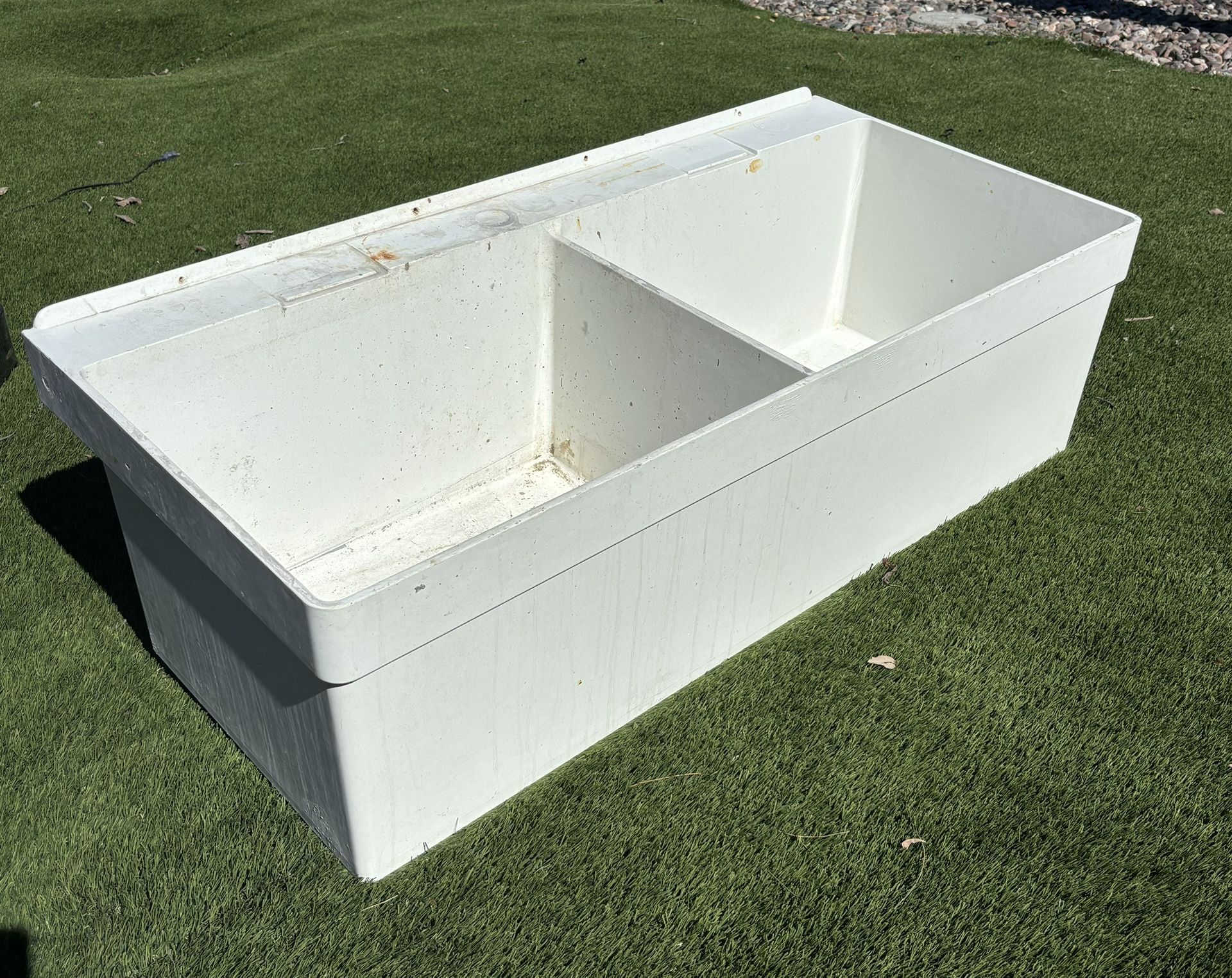 Huge, deep sink Selling for cheap because it needs a clean. A good clean and scrape of paint spills and this is a really good sink for your garage. 45 inches long, 22 inches wide, 13 inches deep
