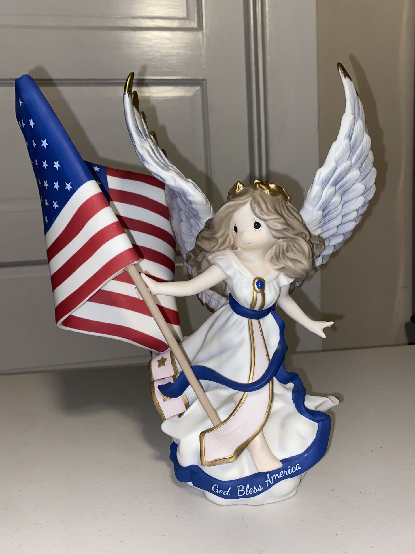 Precious Moments God Bless America Angel Figurine 11.5” damaged 249009