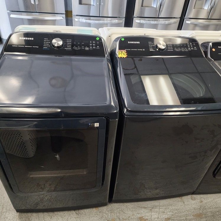 SAMSUNG TOPLOAD BLACK STAINLESS STEEL WASHER AND DRYER GAS