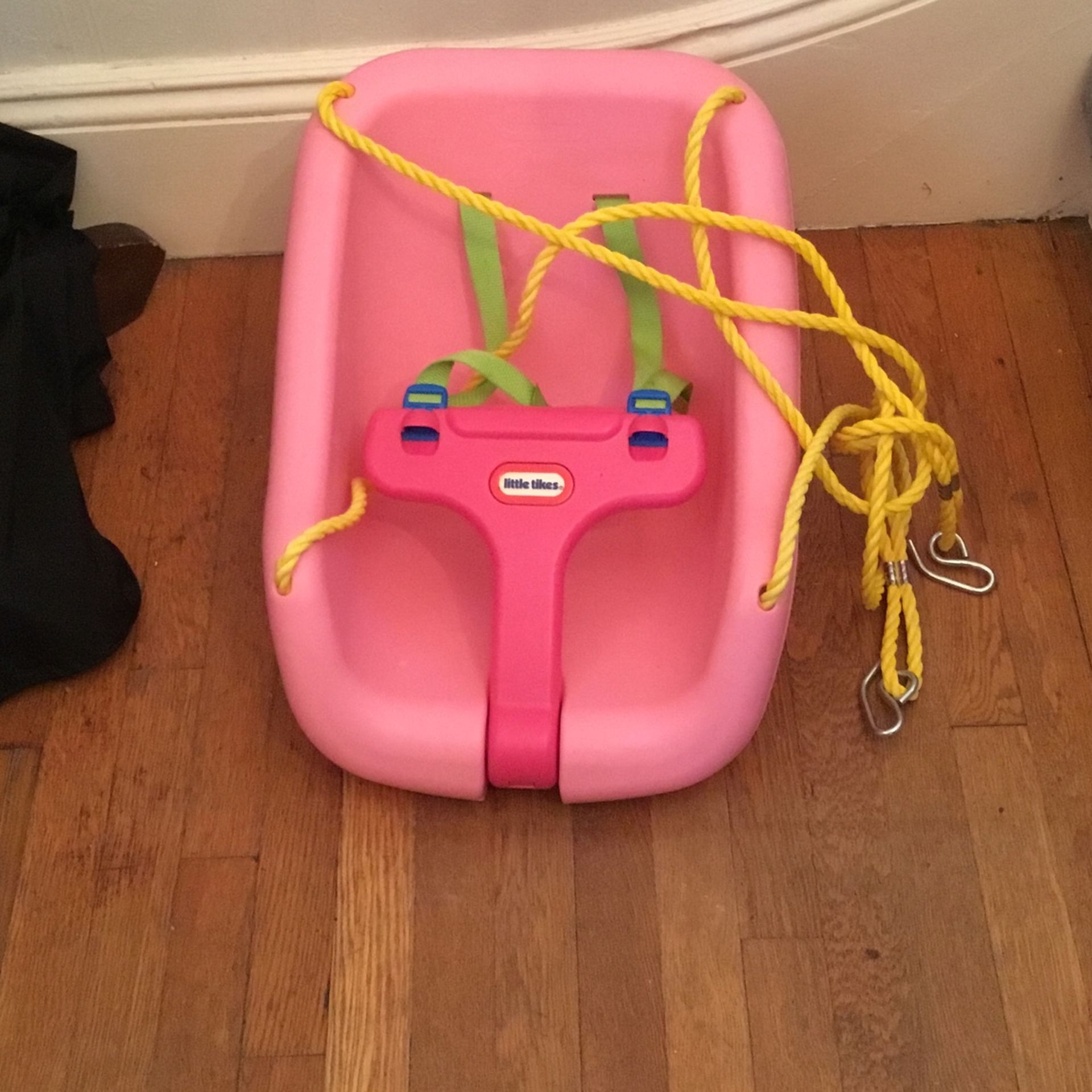Little Tykes 2 in 1 “Snug and Secure “pink child swing . Like brand new condition.Fully assembled, T bar rotates down to bottom, adjusts, for easy entry, can use for older child as well. Adjustable stay put shoulder straps, holds chips securely in seat. Weight limit 50 pounds. Dimensions 17.5” height 16” width 16 “ deep. Asking$15.00