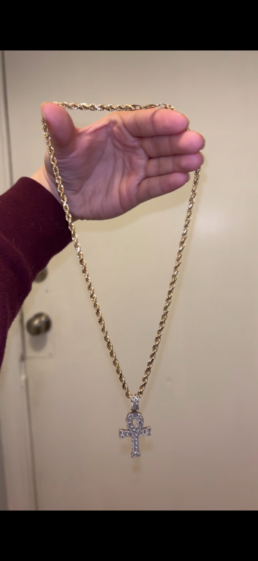 20β 14K Rope Chain, Peruvian Gold 10K Gold Ankh Cross Pendant VVS Diamond Chips - Diamond Tester PASS πβ No Box Pickup Only, SOLD AS COMBO