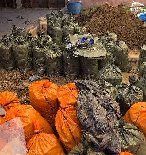 Tengo más o menos 75 bolsas de tierra limpia. Cada bolsa pesa aproximadamente 50 libras.