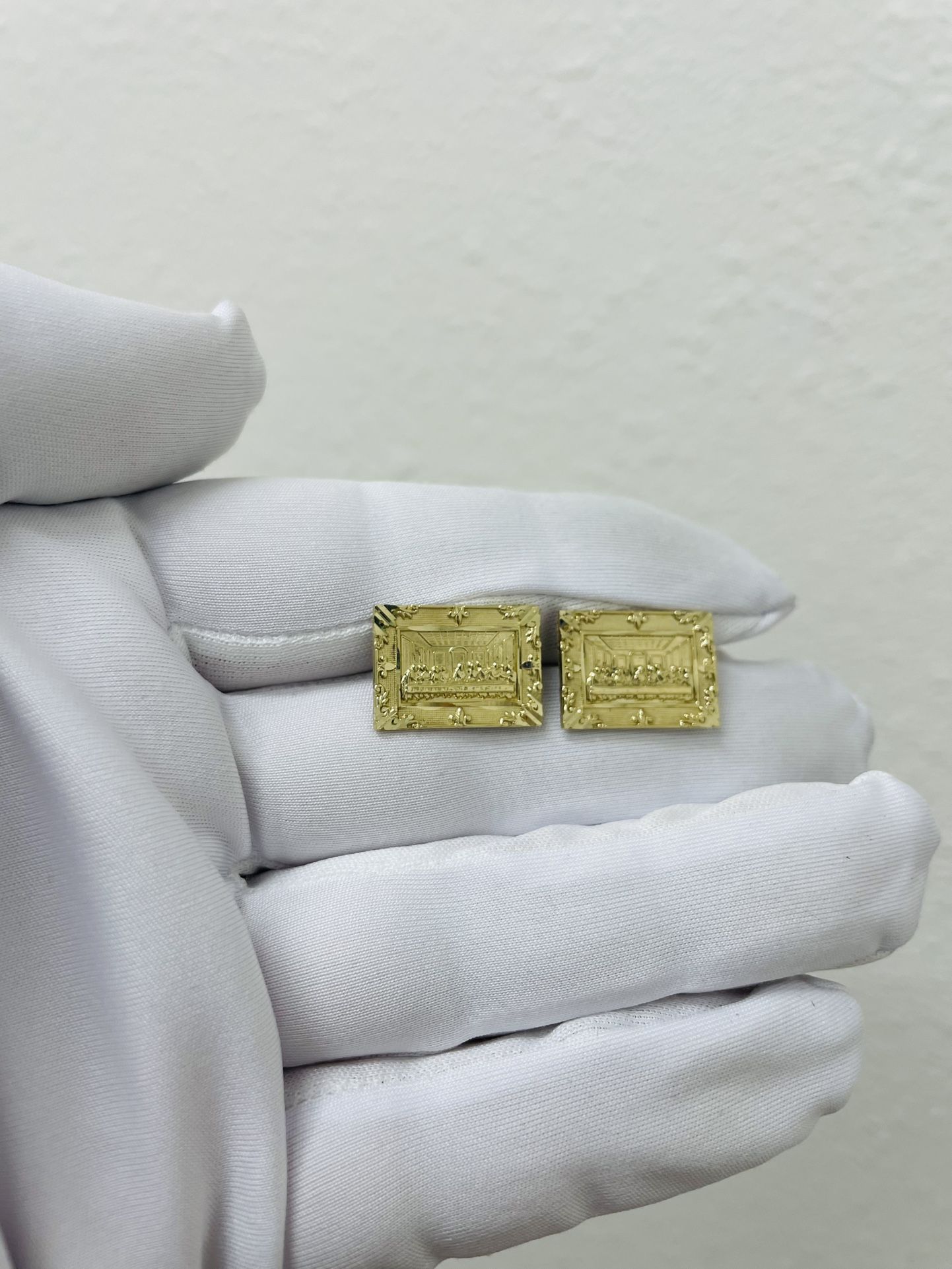 10K yellow gold “The Last Supper” earrings. These earrings are approximately 1/2” tall and 3/4” long. These earrings have push backings. These items are real gold, not plated or filled. Price excludes taxes, price is firm. Thank you.