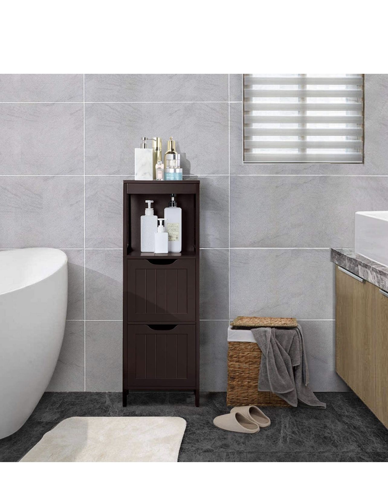 Bathroom Floor Cabinet, Wooden Storage Cabinet with 2 Drawers and 1 Shelf