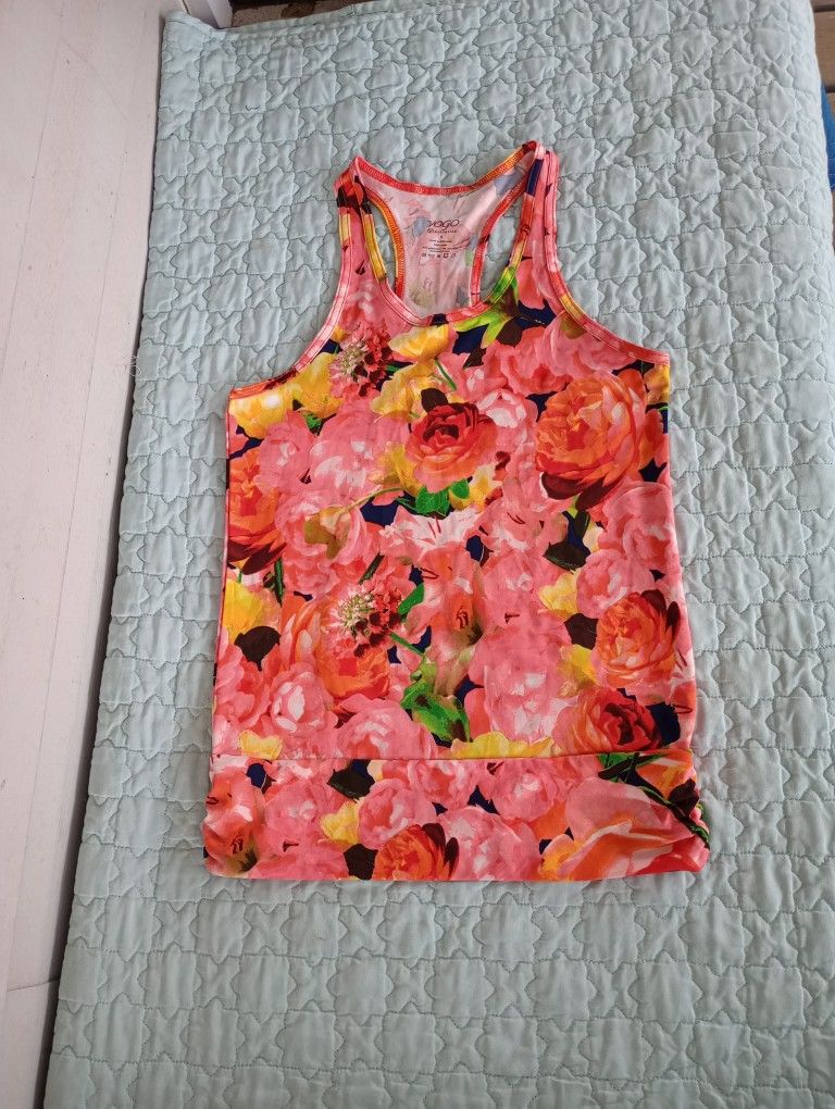 VOGO Athletica floral racerback tank Sz Small. Very pretty tank . Great condition. Elastic scrunch sides. See all pictures for more details and measurements.