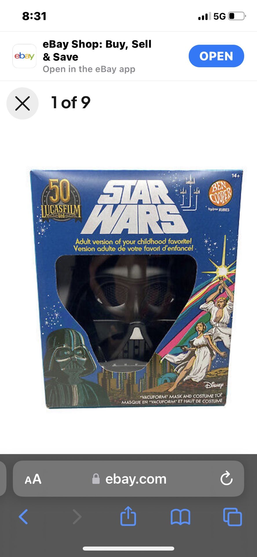 Star Wars Darth Vader Ben Cooper 70s replica of Halloween costume. Never been opened. Perfect Gift for Collectors $40.00