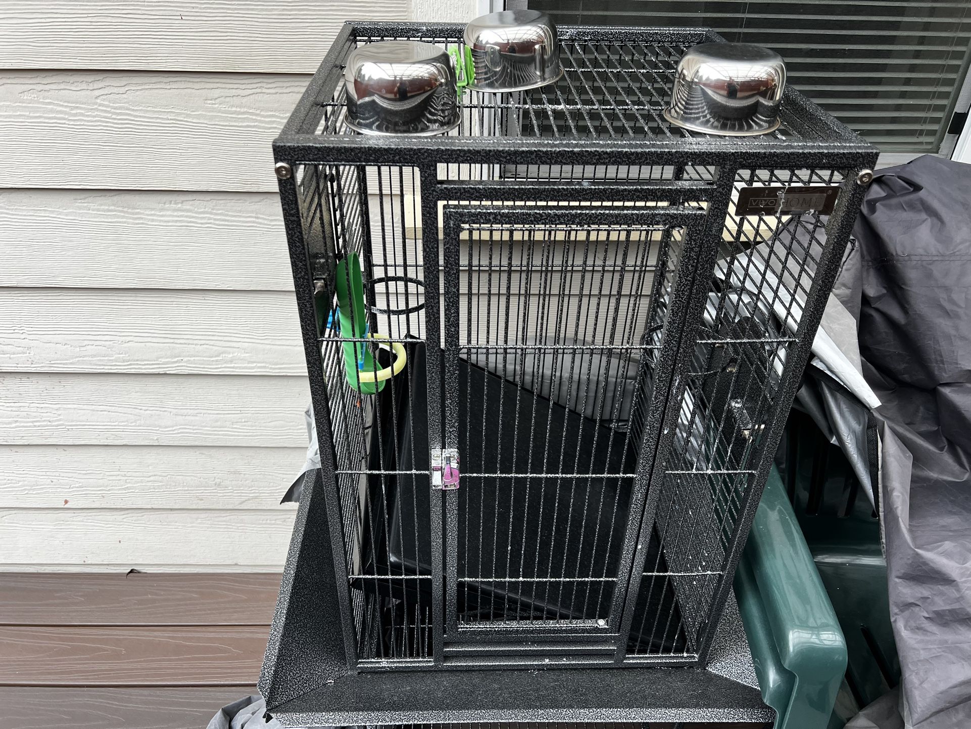 This is a strong metal bird cage that I bought for my bird. I got it for 2 months and and I open door clean up somehow bird went under my hand it got away lol. Retail was $350. Asking for $200 cash