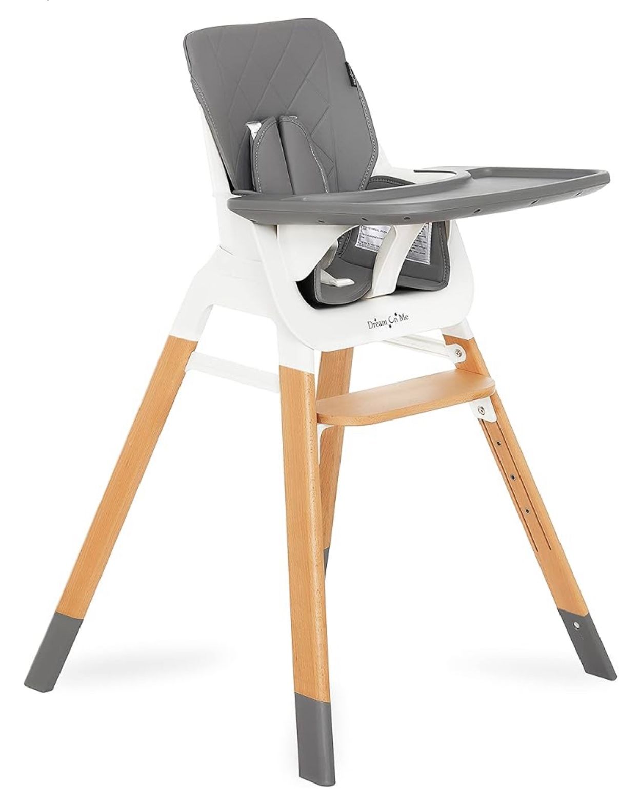 Dream On Me Nibble Wooden Compact High Chair in Light Grey