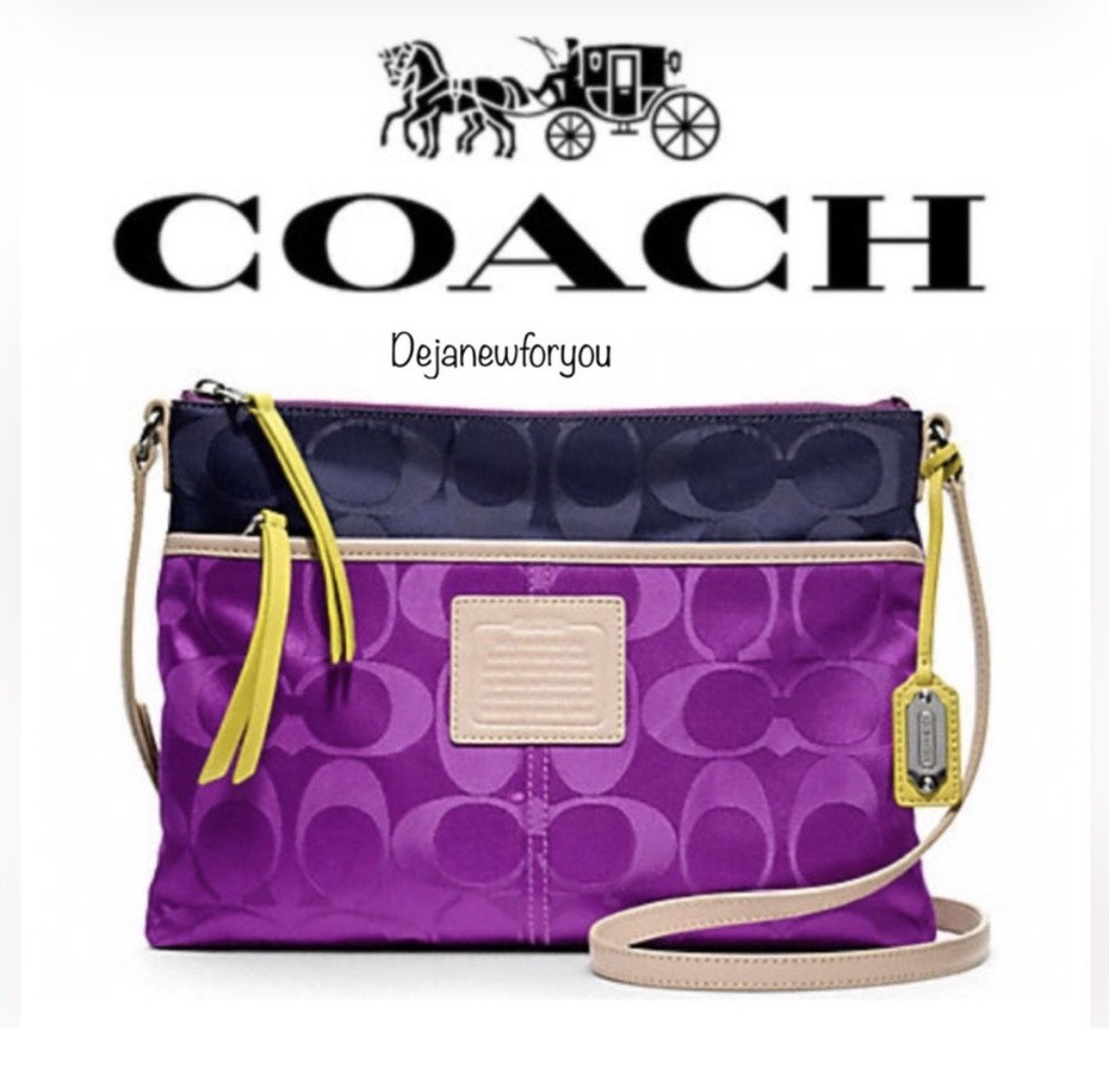 Great bright Coach color block bag! It's so fun! In Great condition and stands out in a crowd. For sure. Please see pics for additional details. Thank you.