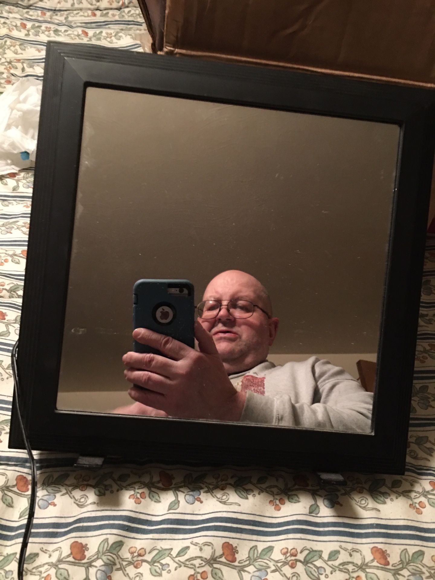 Huge square infinity lighted mirror Excellent shape 12 inches all around Has different light settings See my pictures Neat effects Works great 12/13 reduced in price