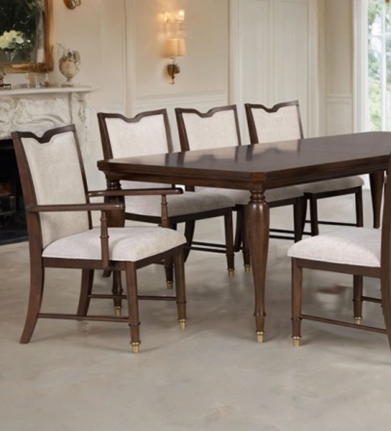 Table + 6 ChairsTransitionalDark CherrySolid Wood, Rubberwood, Cherry Veneer, Poplar Burl Veneer18China Set w/ Wine Rack and 8 Drawers w/ Felt-lined Top Drawers on Hutch & BuffetFrench & English DovetailBuffet w/ Ball-Bearing GlidesUpholstered Chair Back and CushionGold Capped Legs