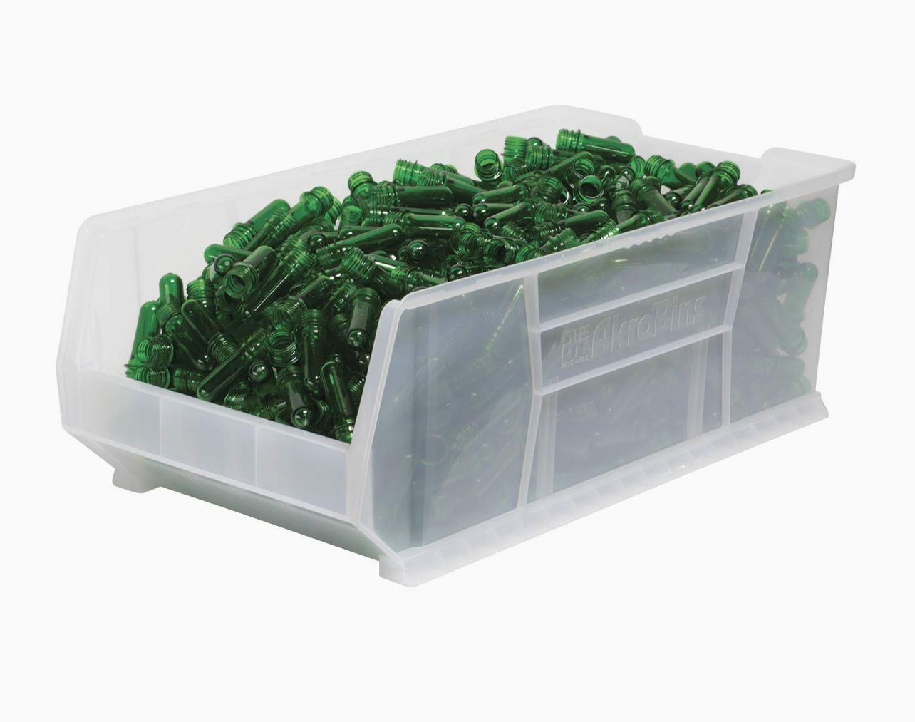 Description Store, sort and organize all of your bulky items with Akro-Mils Super-Size AkroBins Stackable Storage Bins. These handy stacking open front storage containers are large, roomy and strong enough to hold almost anything. Super-Size AkroBins offer you the versatility you need to make the most of your storage space. Same size bins will stack to form tall, stable storage arrangements on floors or standard shelving units. Perfect for chest freezers, closets, sheds, pantry organizing, kid’s playrooms, laundry rooms, garages, classrooms, storing pet food, paint cans, cleaners, and more. Great recycling bins. Large comfort grip handle makes them easy to move even when full. Quality construction, will last for decades. Made in the USA. Product information Part Number 30293BLUE Item Weight 7.8 pounds Product Dimensions 29.25 x 16.5 x 11 inches Country of Origin USA Item model number 30293 Is Discontinued By Manufacturer No Size (30-Inch L x 16-Inch W x 11-Inch H) Finish Glossy or Matte Item Package Quantity 1 Number Of Pieces 1 Special Features Stacking, Hopper Front, Fits on Shelving Included Components Product Guide Batteries Included? No Batteries Required? No Capacity 200 Liters Package Type Standard Packaging Number of Items 1 UPC 032903027419 882709568599 094717344922 Global Trade Identification Number 00032903027419 Manufacturer Akro-Mils