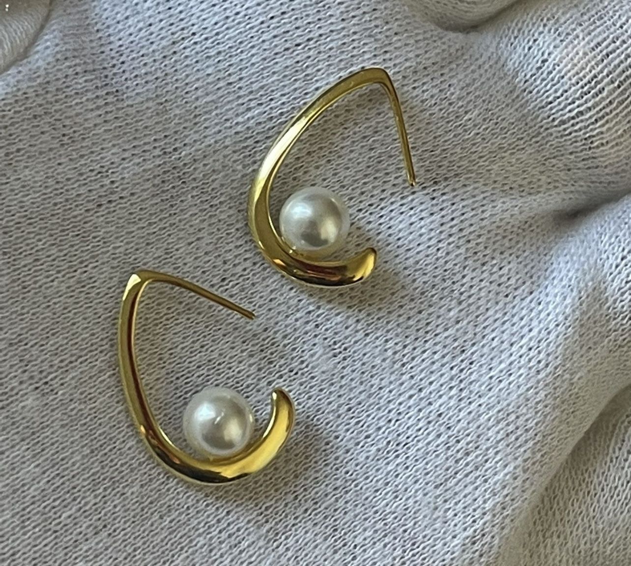 925 Sterling Silver Pearl Irregular Minimalist Hook Earring