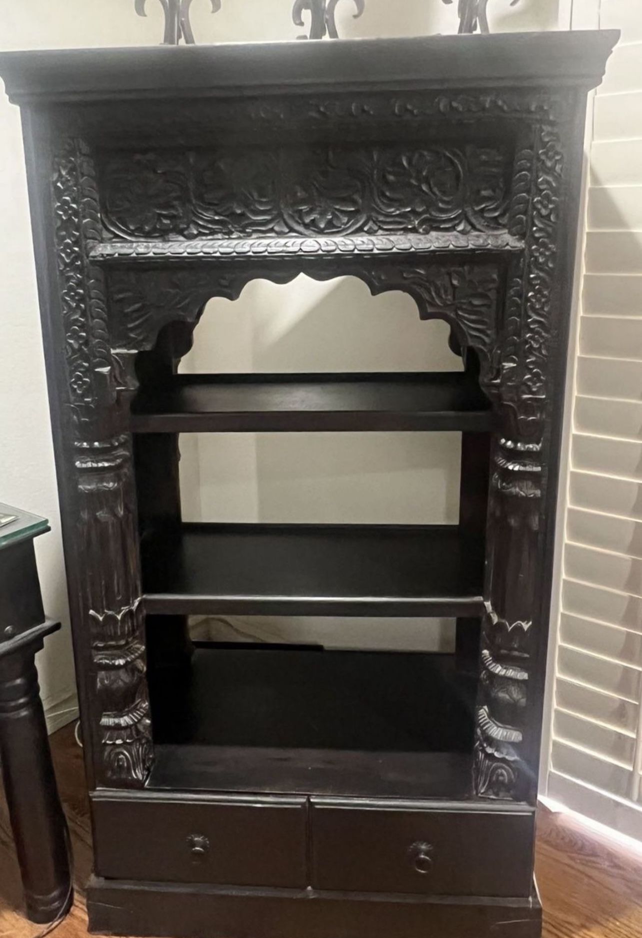 Dark Fausto Palanco solid wood cabinet. Great condition!!! Carved and drawers on both sides.