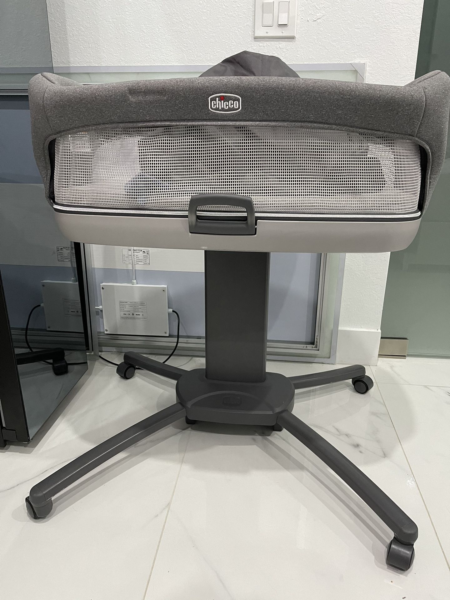 Chicco Close to You 3-in-1 Bedside Bassinet, Portable Newborn Bassinet with Wheels, Adjustable-Height Changing Table | Heather Grey/Grey Like new