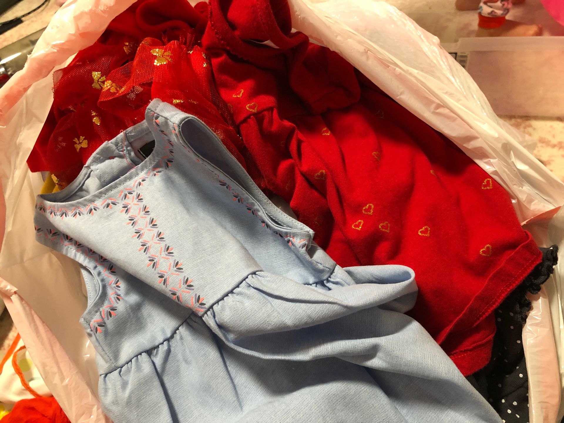 Newborn to 18m some new dresses sweaters onesies ect. Zara H&M Carter’s justforyou Hannah Anderson need gone today and no I don’t have time to take pics of everything but there’s some cute clothes in here. Some washed and never worn.