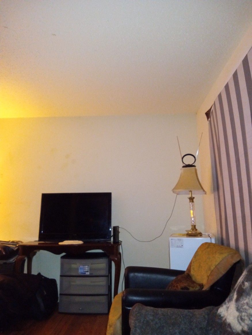 Comes with antenna and RCA digital converter box and seasons Refrigerator. The buttons on the side of the TV, you have to push down hard a few times to work, the digital converter box needs a remote, the refrigerator needs refrigerant.