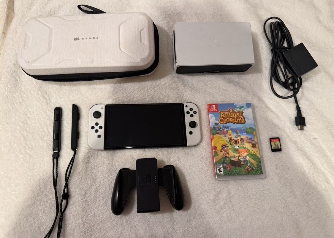 🎮 Nintendo Switch OLED (White) – Like New Condition Selling my Nintendo Switch OLED in excellent condition. It has been very lightly used and is in perfect working order. Everything has been well taken care of and stored safely when not in use. ✨ Details: - 7-inch OLED vivid display (brighter colors & deeper contrast) - 64GB internal storage - White Joy-Con controllers included - OLED dock for TV play - Long battery life - Fully functional buttons, ports, and touchscreen - No cracks, no major scratches, clean and well maintained 📦 What’s included: - Console - Dock - Joy-Con controllers - Charger - All items shown in photos ✔️ Factory reset already done ✔️ Ready for new owner to set up and play ✔️ From a clean, smoke-free home 💬 You won’t regret this purchase — it’s a great deal for anyone looking for a like-new system. If you have any questions, feel free to message me anytim