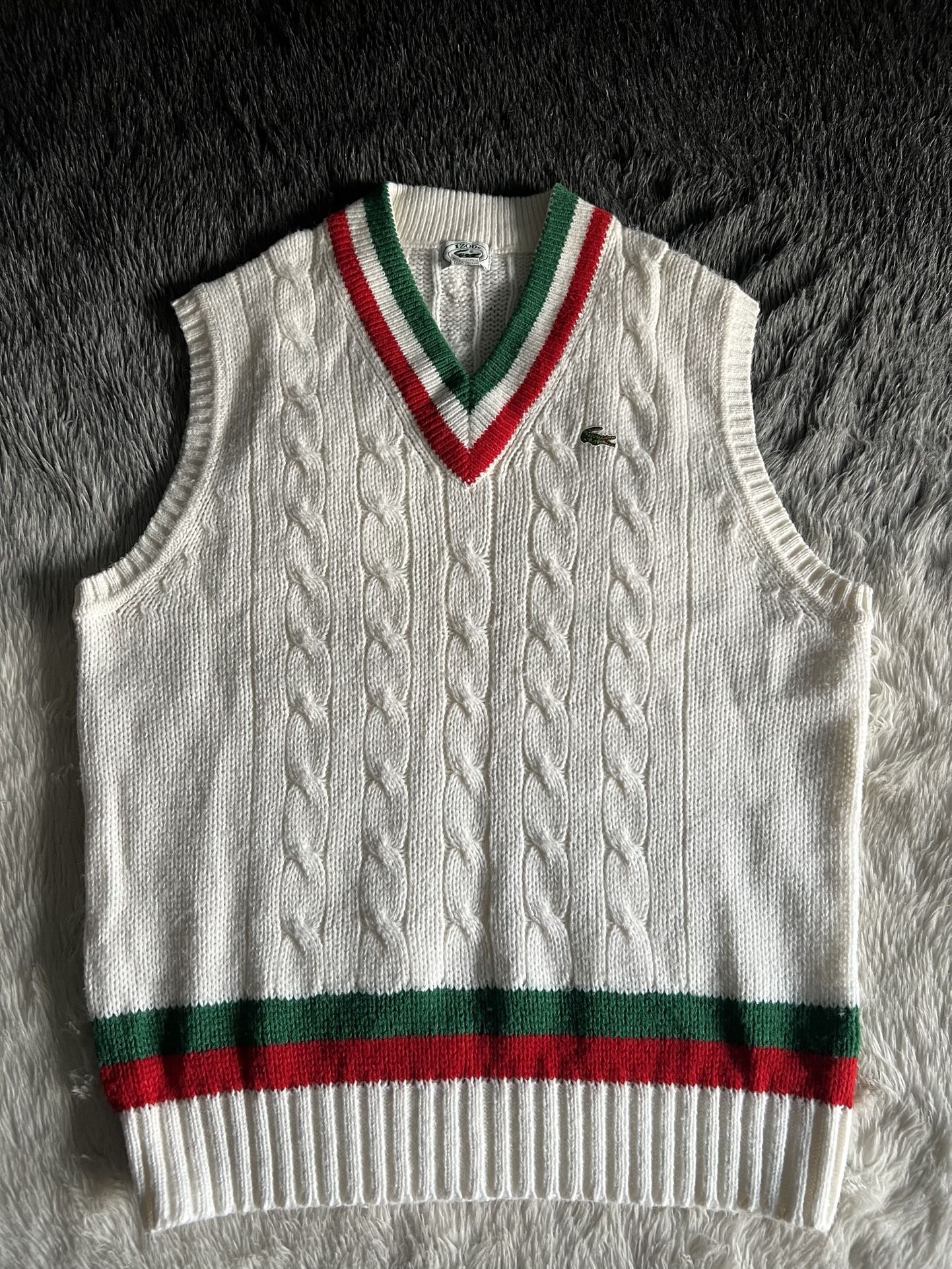 Vintage Izod Lacoste Sweater Vest Cable Knit V Neck Tennis Vest Mens Size XL