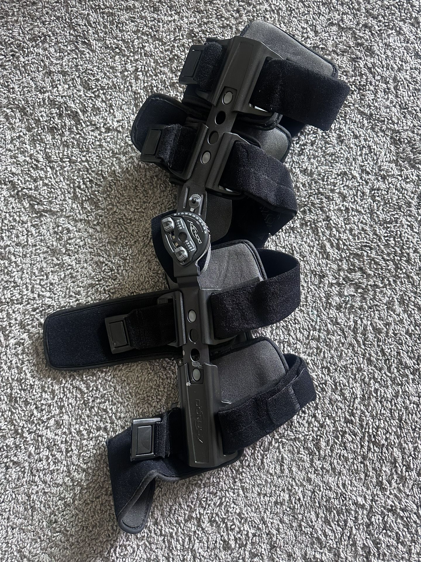 The X-Rom Post-Op Brace is a post-operative knee brace designed to provide precise protection and support following knee surgeries such as ACL, PCL, LCL, MCL repairs, and meniscal procedures. This brace is ideal for patients looking for a reliable and comfortable solution to manage post-operative knee recovery, allowing for controlled movement and enhanced mobility. Offering advanced range of motion (ROM) protection with updated hinge bars, the brace makes application and adjustments fast and straightforward. Features and Benefits Hinge Design Allows ROM Control in 10-Degree Increments, With -10° to 90° Extension and -10° to 120° Flexion Quick-Lock Feature Enables Easy Locking at a Specific Angle Equipped With an Innovative Strap, Tab, and Buckle System for Quick Adjustments Easy Push-Button Slider Settings Enhance Brace Placement and Comfort, Avoiding Pressure on Sensitive Areas Like the Surgical Site or Peroneal Nerve Four Independently Telescoping Sliders Allow Custom Fitting to a Range of Leg Sizes, From 4′11″ to 6′5″ Suitable for Various Body Shapes and Sizes and Can Be Worn on Either Leg, Providing Flexibility in Postoperative Care Anti-Microbial Pads Help Neutralize Odor Anti-Migration Foam and Dynamic Frame Conform to the Leg, To Help Reduce Slippage