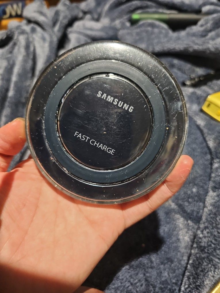 Fast charging wireless charger compatible with almost all Samsung Galaxy and other Samsung model phones. Does not come with original cable but still works just as efficiently.