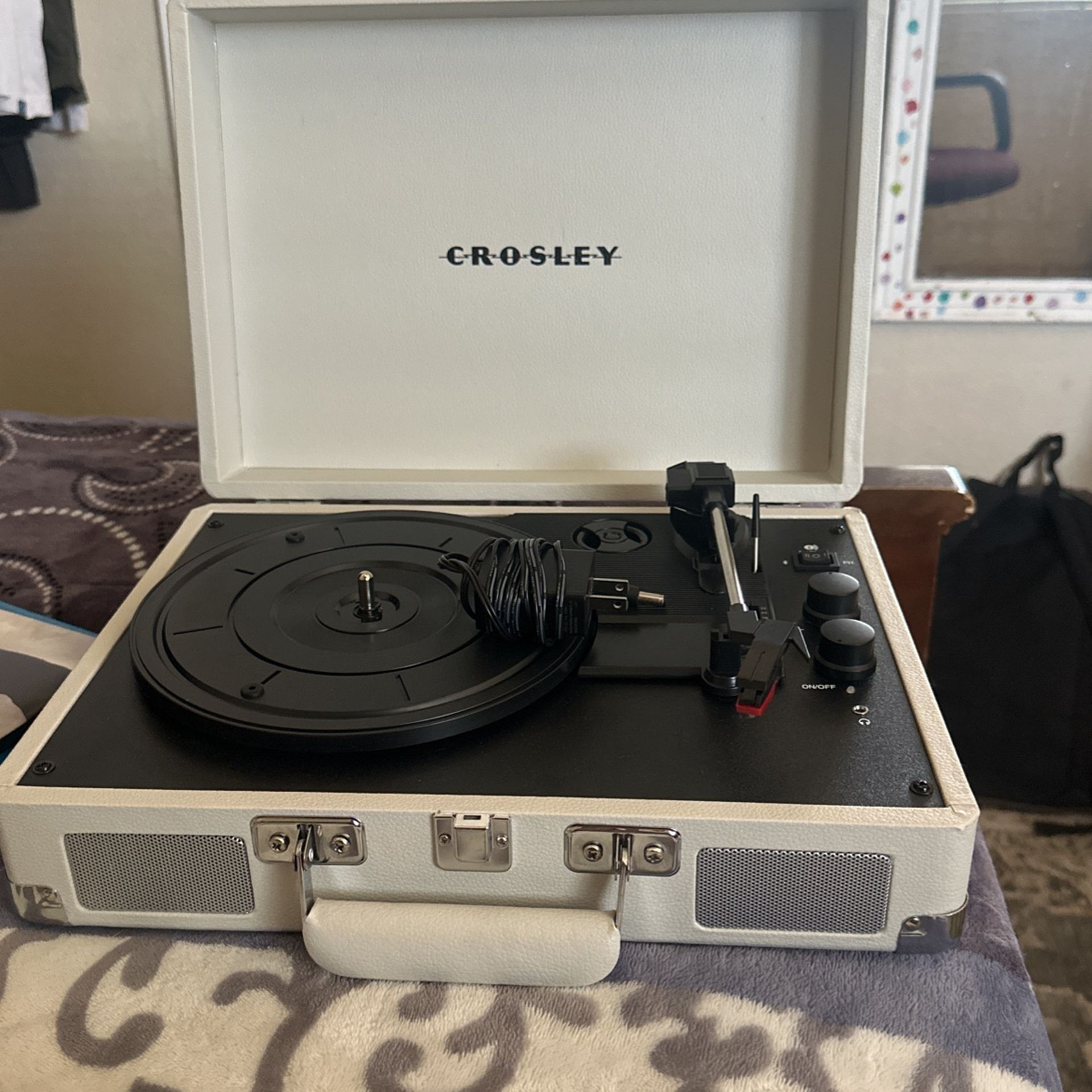 Comes with everything the connection it’s Bluetooth as well and two records (Michael Jackson Thriller and Eddie Fisher Today).