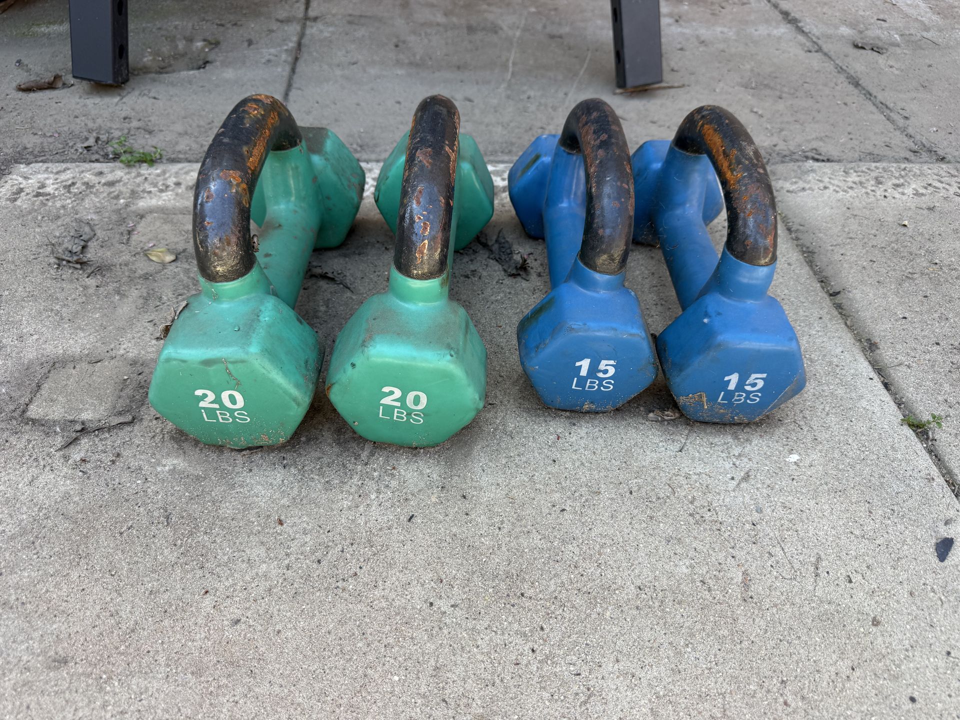Asking 40 for both sets I have more workout equipment on my page for sell Boxing, Weight, weights, exercise, workout, curl bar, barbell, Olympic weights, squat, squat rack, rogue, bowflex, bench press, dumbbell, dumbbells