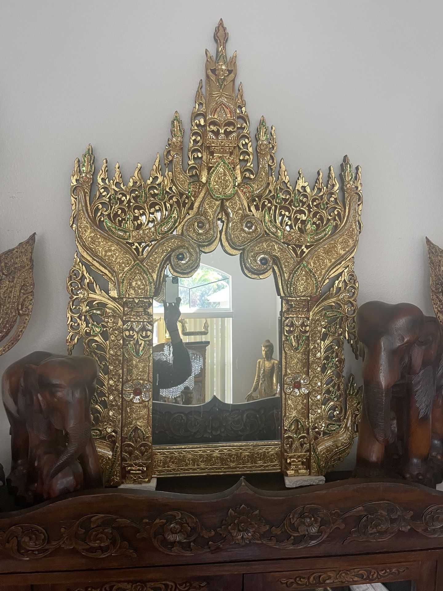Huge Thai wood High End gold flaked mirror. 46 X 32. retail is over 4k if you can find one. A true collection and conversation piece.